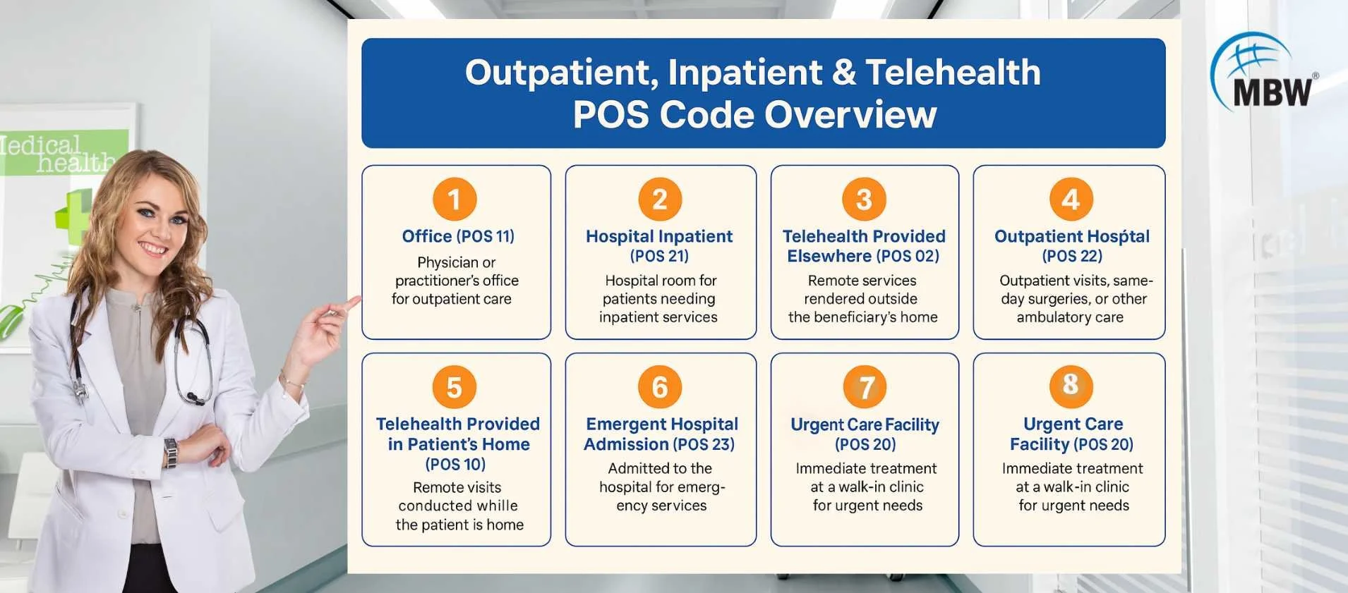Getting CMS Place of Service (POS) codes right can make all the difference in how quickly and correctly you get paid. At MBW RCM, we ensure that your POS codes align perfectly with the service, location, and documentation—so your claims move faster, with reduced rejections and far less stress.